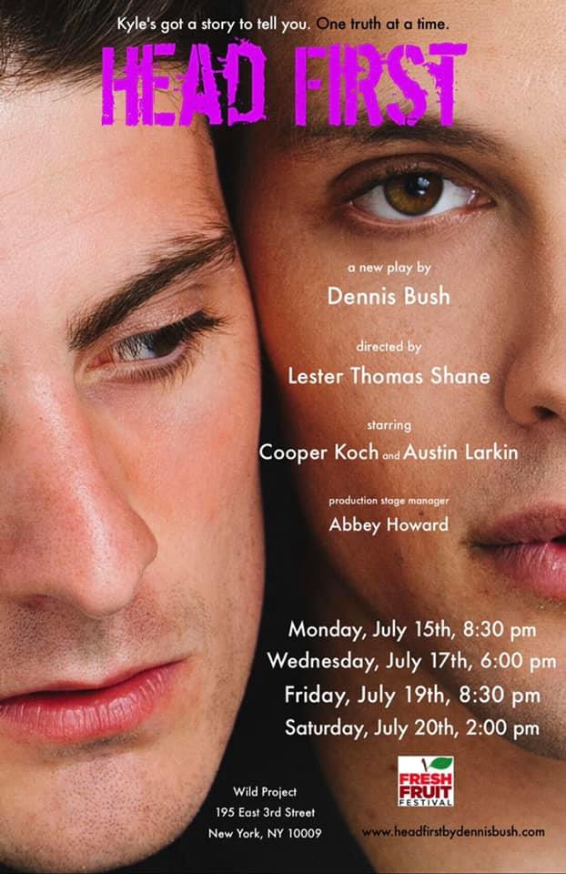 Dennis Bush’s play HEAD FIRST at the Fresh Fruit Festival this past July, somehow gives us a romance with humor from a lead character who suffers from brain seizures due to a car accident.