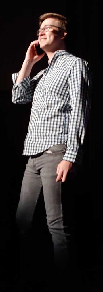 An inspired casting choice was Sara Minisquero. Playing Jack’s childhood best friend. Sara set the pace for the illusions the show offered up. The part – one might expect to be played by a man – was that much more engaging as a woman. Minisquero played it like a tomboy smitten with Jack, offering many Freudian hypotheses as to their relationship. Or maybe she was a boy and Jack saw a girl he can deal with? Another character calls her a boy at one point in the show, so we might then ask if the character was all in Jack mind.