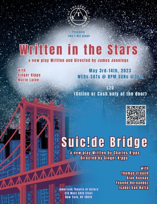 Written in the Stars by James Jennings and Suicide Bridge by Charles Kipps make for a thoughtful paring of one act plays. When put together, playing on the same bill as they are at the American Theatre of Actors, they talk a lot about what it means to do something with your life.