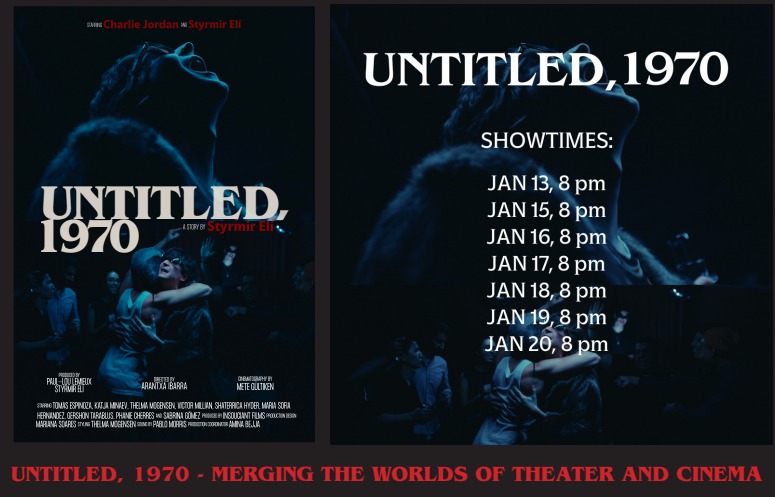 Untitled, 1970, is the ultimate in immersive theatre. This multimedia theatrical play involves improvision with actual script; live theatre with planned, prepared, and produced television programs mixed into the story; and – the most stunning element – the play is set in a New York apartment so the play is being done IN A NEW YORK APARTMENT! Even the story is a parable of the innovation as we meet Joey & Tristan as they arrive in New York and attempt to navigate friendship and the perplexities of life in their new surroundings.