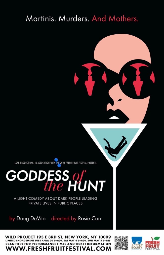 Take the Myth of Diana the Huntress; Season it in an homage to Alfred Hitchcock; and add the biting wit of prolific playwright Doug DeVita and you have … Goddess of the Hunt a featured event of the 2024 Fresh Fruit Festival MAINSTAGE New Works Festival starring Broadway veteran, Kevin Ligon