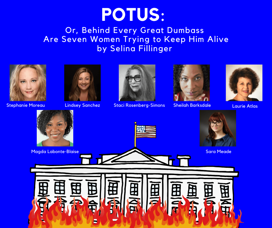 POTUS: Or, Behind Every Great Dumbass Are Seven Women Trying to Keep Him Alive by Selina Fillinger; Saturday July 13th at 8pm; Sunday July 14th at 2pm; Friday July 19th at 8pm; Saturday July 20th at 8pm; Sunday July 21st at 2pm; Friday July 26th at 8pm; Saturday July 27th at 8pm; Sunday July 28th at 2pm