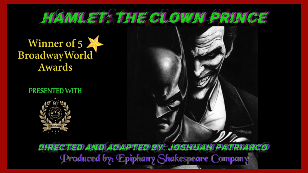 Hamlet: The Clown Prince reimagines Shakespeare’s greatest tragedy through the chaotic lens of Gotham City. The play transforms classic characters into fan favorites from the Batman universe: Hamlet as a mash-up of Batman and the Joker, Ophelia as Harley Quinn, Claudius as Penguin, and Gertrude as Catwoman.
