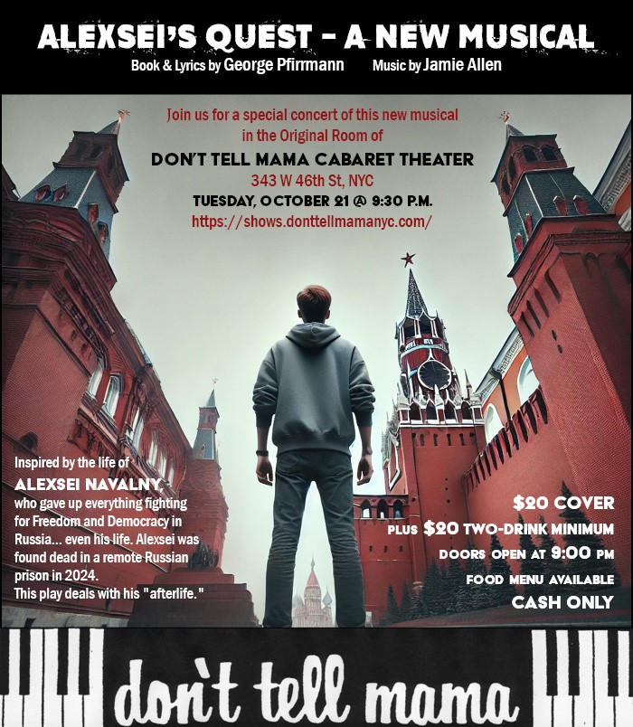 “The idea of this musical was inspired by the life of Alexsei Navalny, a man who gave his life fighting for Freedom and Democracy in Russia. Alexsei was found dead in a remote Russian prison in February 2024. This play deals with his “afterlife.”