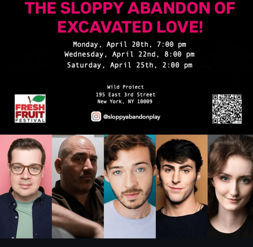 Dennis Bush has given the world a very solid comedy/drama in The Sloppy Abandon of Excavated Love. The play has excellent performances and very good direction. The only problem is that Bush has written more plot lines than he has characters. That means there are too, too many to effectively develop in this approximately two-hour show that is at no time devoted to absurdism.